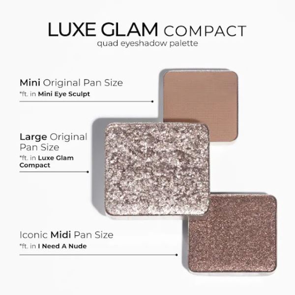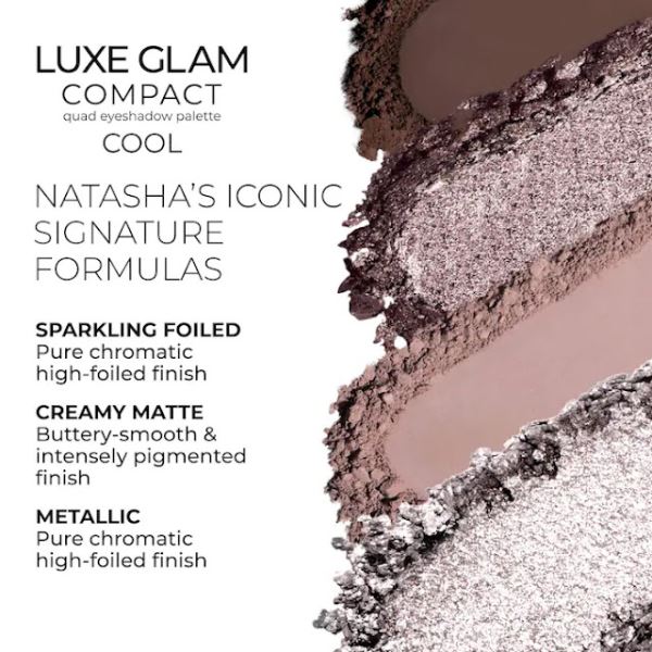 Наташа Денона впервые выпускает новый формат теней для век. Компактная палетка теней для век Luxe Glam Compact Quad Eyeshadow Palette возрождает ностальгический формат 2,5-граммовых оттенков оригинальных палеток с 28 оттенками.