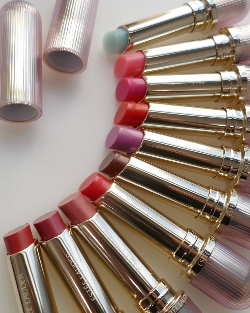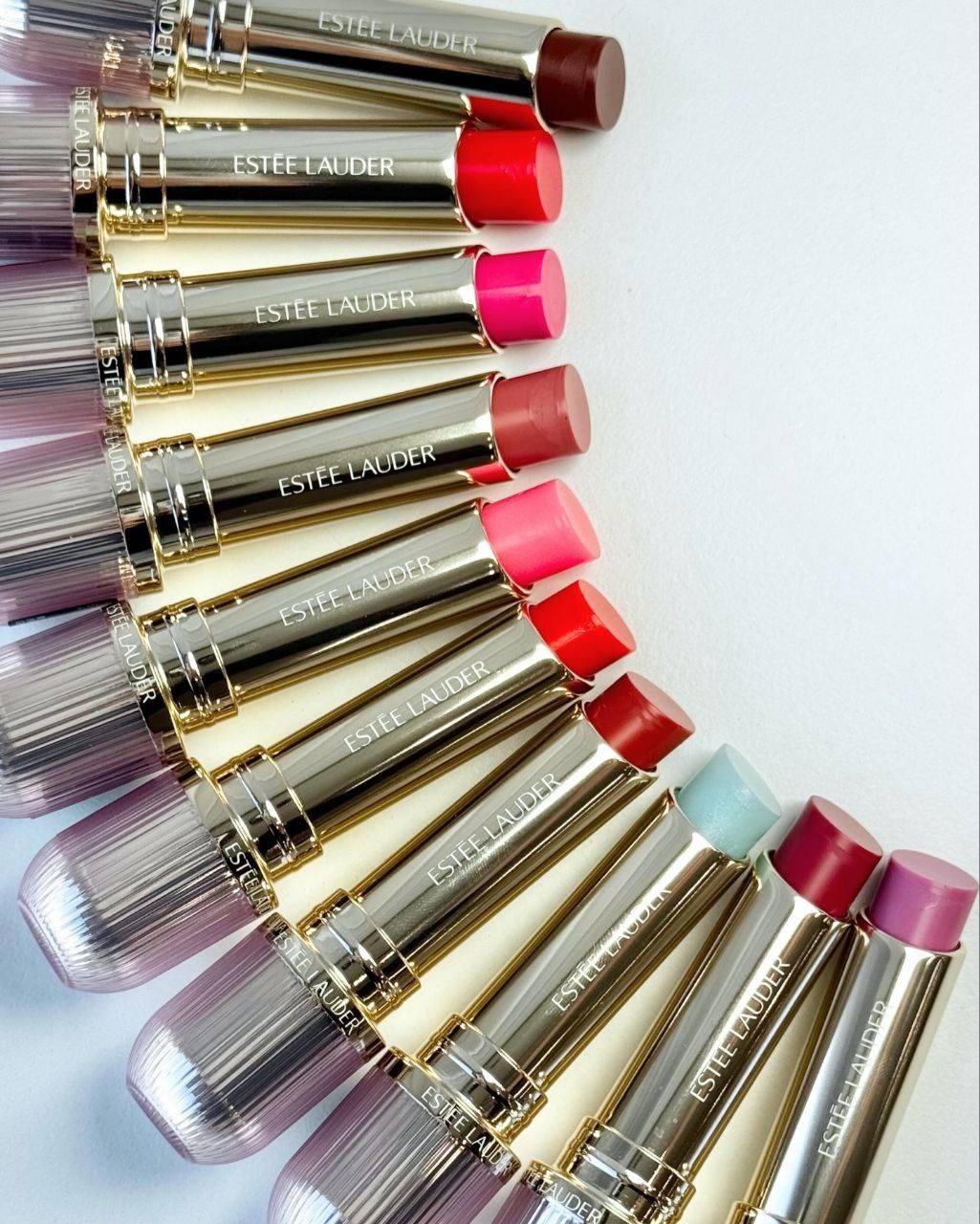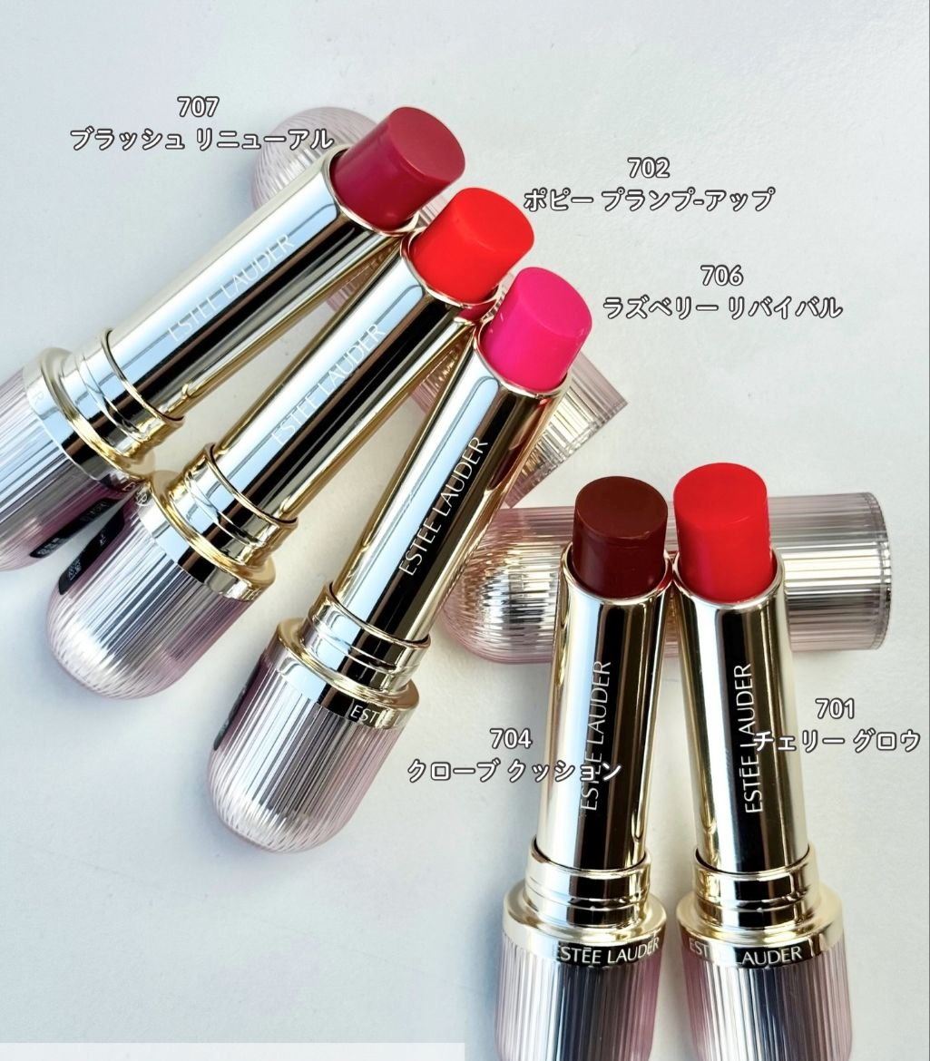 Живые фотографии и свотчи новых бальзамов-пламперов для губ Estee Lauder Futurist HydraPlump Lip Balm 2026 (подробный пост о них по ссылке). Далее несколько свотчей при разном освещении.