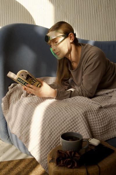 Маска сделана из гибкого антибактериального силикона: она не скользит и не цепляет волосы, идеально облегает лицо, а глаза остаются открытыми. Можно ходить по дому, делать завтрак или просто валяться на диване с книгой – полная свобода. В мобильном приложении уже есть готовые протоколы процедур, можно настроить всё под себя.