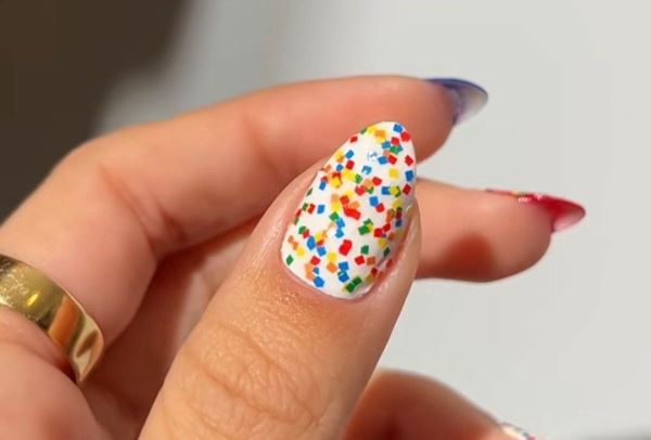 Разноцветные брызги, хаотичные точки, мелкое конфетти и объемные 3D-вкрапления… Рассказываем, как добавить красок в маникюр, сохранив чувство стиля.