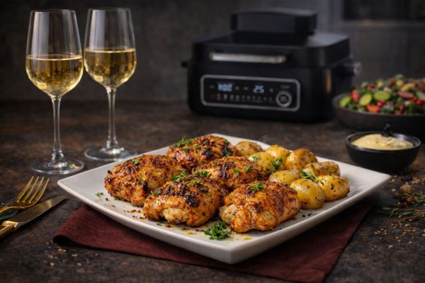 Представителей сильной половины человечества обычно не тянет на салатики и изящные легкие десерты, так что лучше готовить что-то более основательное. Мясо и птица в этом смысле работают почти безотказно: это сытный белок, который дает длительное насыщение, поддерживает энергию и банально воспринимается мужчинами как нормальная и правильная еда. Плюс такие блюда проще сделать эффектными даже без сложных гастрономических ухищрений — достаточно хорошего куска мяса, правильной прожарки и понятных специй. А еще — удобного функционального аэрогриля. Это, кстати, позволит обойтись еще и без лишнего масла.