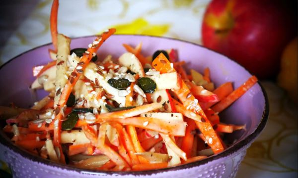 Морковно-яблочный салат с семенами и тахини