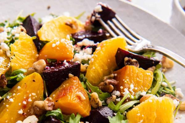 Салат из запеченной свеклы с апельсином и грецкими орехами