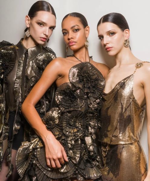 Золото и серебро на миланских подиумах словно растеклись по тканям, потеряв привычную плотность и зеркальность. Ferragamo, Sportmax и Blumarine предложили носить их в «жидком» состоянии — текучими и мерцающими.