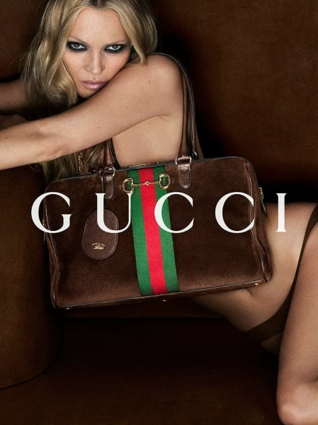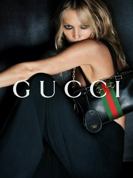 Первое появление Кейт на подиуме Gucci состоялось в 1995 году, когда Том Форд был назначен креативным директором, а в 2001 году она стала лицом рекламной кампании для этого бренда, также приняв участие в показе в том сезоне. В 2014 году Мосс снялась в короткометражном фильме Gucci.