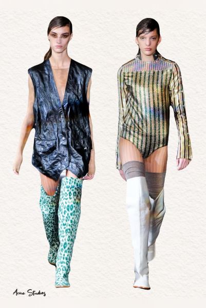 Acne Studios Еще одним трендом 2016 года стали ботфорты. Дизайнеры предлагали облегающие модели, похожие на вторую кожу, либо же, наоборот, сапоги с широким голенищем. Такую обувь можно было увидеть в коллекциях Vetements, Fendi и Acne Studios.