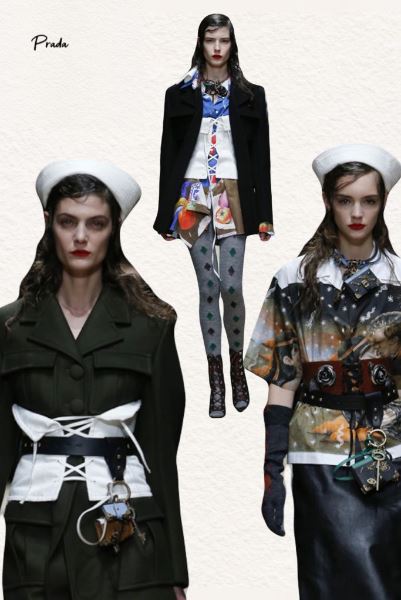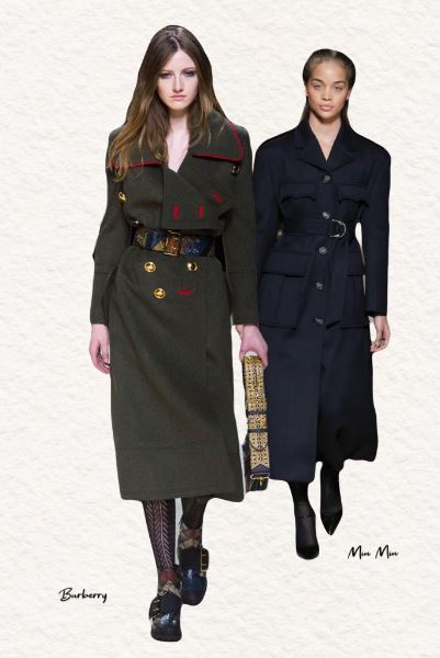 Burberry и Miu Miu Тогда же в коллекциях появилась и военная тема. Плащи-бушлаты и шинели «вышли» на подиумы Burberry, Maison Margiela и Miu Miu.