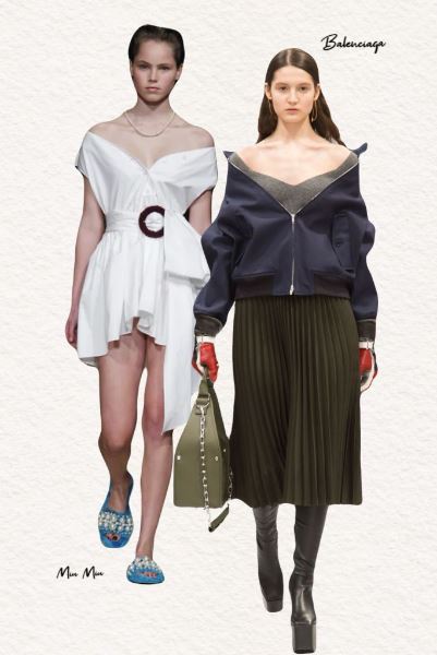 Miu Miu, Balenciaga Отдельного внимания заслуживают спущенные плечи. У Dior в коллекции осень-зима 2016 они встречались на платьях, блузках и даже плащах. Похожим образом эту деталь обыграл бренд Miu Miu. Для энтузиастов моды и экспериментаторов Alexander McQueen создал пуховики-одеяла. А тем, кто предпочитает спортивный шик, Balenciaga предложил интересный крой толстовок на молнии.