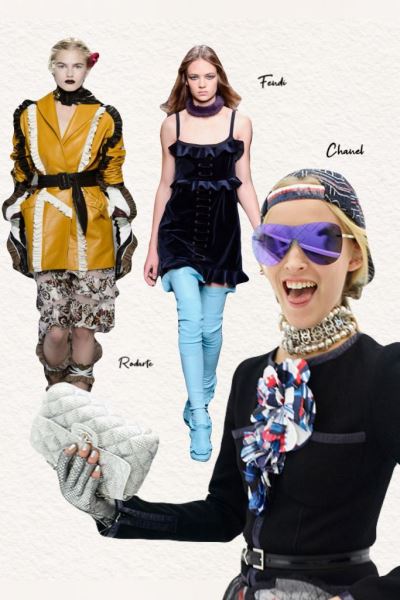 Чокеры можно было увидеть на шоу многих брендов: от показов осень-зима Fendi и Rodarte до коллекции весна-лето Дома Chanel. Дизайнеры предлагали их в разнообразных вариантах — были и объемные бархатные аксессуары, и кожаные акцентные элементы, и массивные цепи.