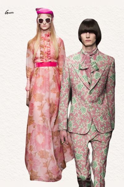 В 2016 году можно было встретить все вариации розового — от пастели до фуксии. Тот самый «пыльный» оттенок (иногда с нотами лилового) показал Gucci в коллекции осень-зима. В ней креативный директор Алессандро Микеле активно использовал шифон и шелк в этом цвете — в платьях, завязанных бантами шарфиках, легких полупразрачных блузах и юбках.