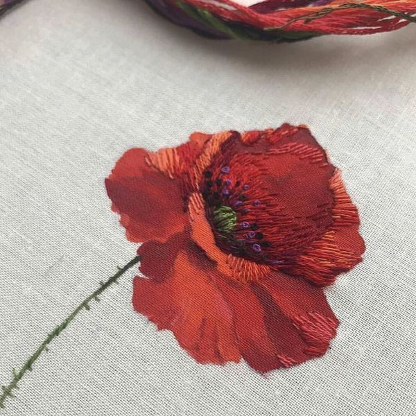 Мой стиль свободен от предрассудков, зажимов и рамок. Есть задумка — значит, будет и ее творческое решение. Я опираюсь на классические каноны вышивки, но также стремлюсь расширить границы и возможности текстильной картины: часто использую живописный красочный слой под вышивку, пришивные элементы, например, бусины, стразы, аппликации.