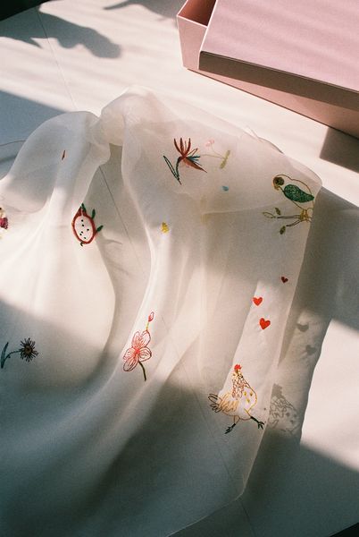 Несмотря на то, что изначально бренд «Курочки » задумывался в первую очередь как свадебный, невест среди моих клиентов — процентов 30: все благодаря шелковым шарфам с вышивкой и второй линейке проекта (платки с принтами), которые, несмотря на нарядный вид, отлично вписываются в повседневный образ.