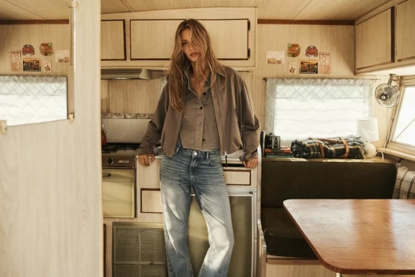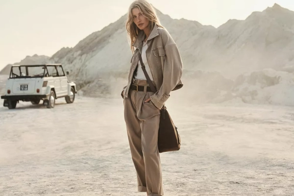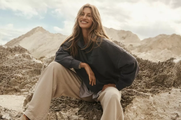 В новой рекламной кампании Жизель продемонстрировала на себе несколько тревел-образов в натуральных природных оттенках: бежевый хлопковый вощеный комплект из брюк и жакета, джоггеры цвета серый меланж в сочетании с графитовой плотной рубашкой, потертые джинсы с укороченной курткой и другие наряды, собранные по принципу многослойности и функциональности.