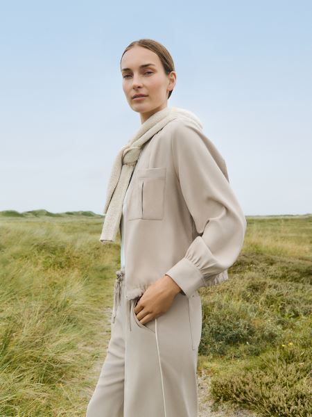 The Arch показал весеннюю коллекцию, построенную на балансе формы и мягкости. В линейке использованы натуральные и фактурные ткани: плотный хлопок, легкий лен, смесовые материалы и замша. Цветовая палитра, как и в предыдущих капсулах, остается сдержанной — нейтральные оттенки и приглушенные тона, в числе которых голубой, синий, бежевый и серый. Ищем комплекты в спортивном стиле, тренчи, жакеты, топы, широкие брюки, юбки и многое другое. Бренд Loginova представил специальный дроп к 8 Марта под названием 柔 / JŪ, которое отсылает к японскому кандзи, связанному с идеей внутренней устойчивости, рождающейся из спокойствия и мягкости. В него вошли платья, костюмы и кимоно из натуральных тканей, дополненные аксессуарами ручной работы: тюрбанами, украшениями с гранатом, а также клатчем и сумкой-мешком из атласа.