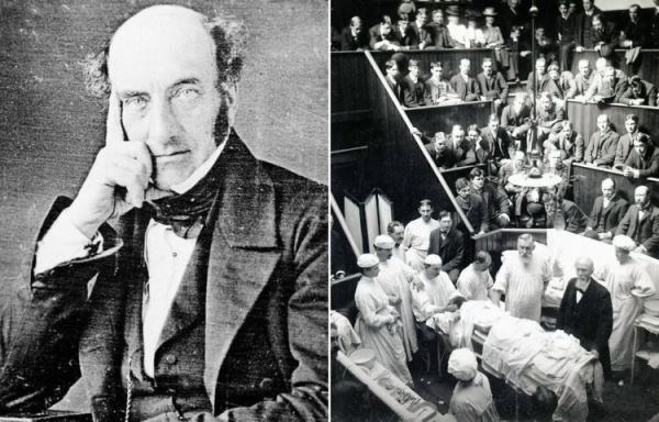 На первом фото Роберт Листон, примерно 1845 год. На втором фото пример того, как выглядела операционная в ту эпоху. Источники изображений: dailymail.co.uk, vk.com